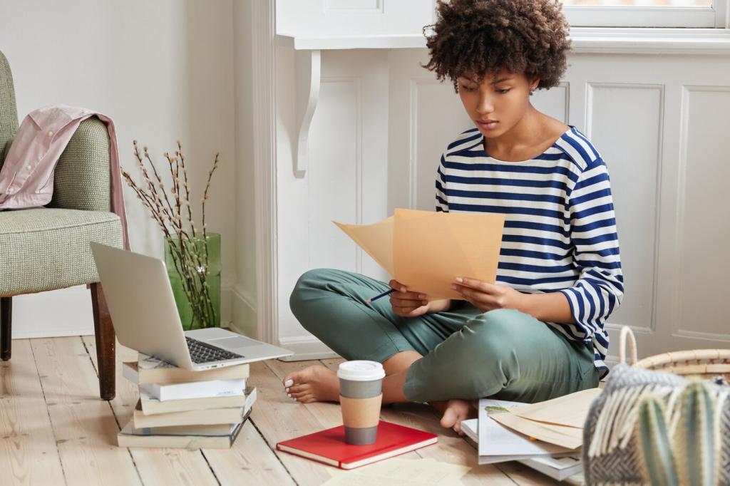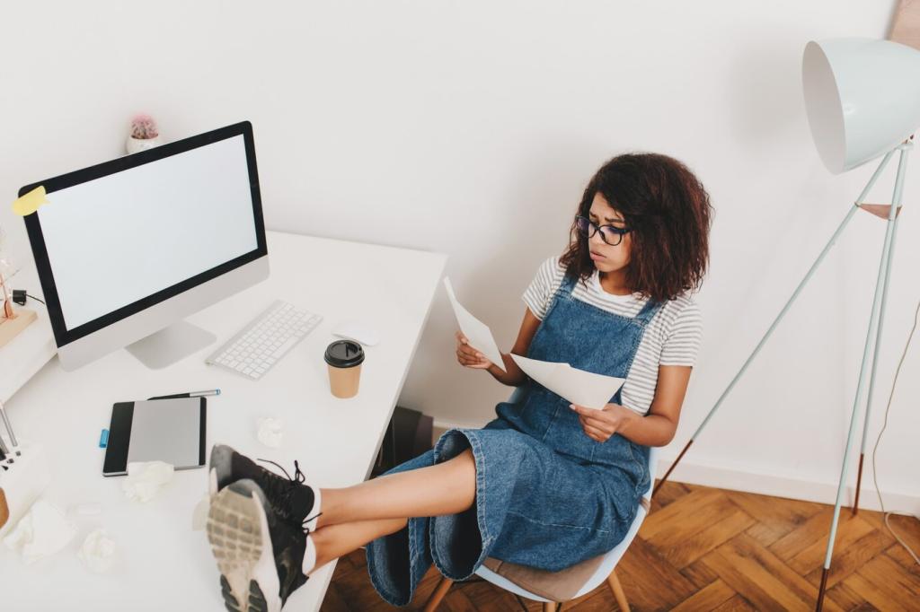 Beschreibe Beinfreiheit unter dem Tisch mit „kniehohe Luft“ oder Sofatiefe als „gemütliche 20‑Minuten‑Lesehaltung“. Leser testen das gedanklich sofort. Schicke uns dein Lieblingsmöbelmaß, wir formulieren eine bessere, anschauliche Alternative.